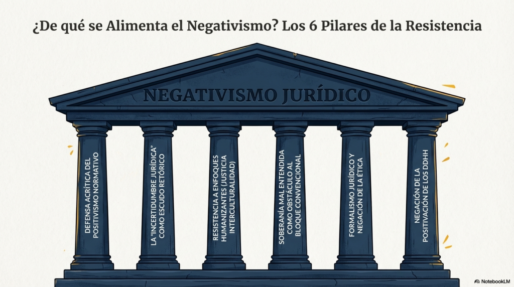 Lejos de tratarse de simples omisiones o errores técnicos, el negativismo jurídico se manifiesta como una estrategia institucionalizada que perpetúa el formalismo, el rechazo al principio pro persona y la negación del control de convencionalidad. Esta resistencia paradigmática se refleja en sentencias, programas de formación judicial y políticas públicas, afectando especialmente a grupos en situación de vulnerabilidad.