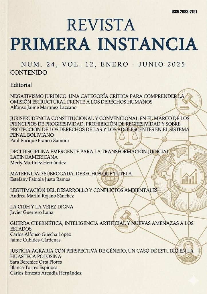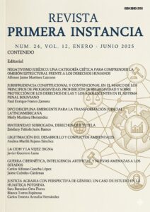REVISTA PRIMERA INSTANCIA, es una revista electrónica arbitrada en español de difusión periódica semestral, vía red de cómputo desde el 2013, editada por el Dr. Alfonso Jaime Martínez Lazcano, con domicilio en Boulevard Presa de la Angostura, número 215-12, Fraccionamiento Electricistas Las Palmas, Tuxtla Gutiérrez, Chiapas, C.P. 29040, Tel. (52) (961) 6142659, http://www.primerainstancia.com.mx/revista-primera-instancia/ . Correo: primerainstancia@Outlook.com. Reserva de Derechos al Uso Exclusivo No. 04-2018-061813141600-203, otorgado por el Instituto Nacional del Derecho de Autor, ISSN 2683-2151. Responsable de la última actualización de este número Dr. Alfonso Jaime Martínez Lazcano.